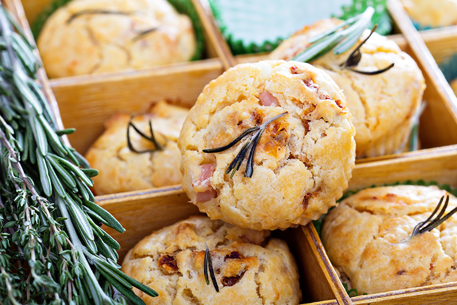 Mettete qualche pezzetto di rosmarino sopra i muffin e infornate in forno preriscaldato a 180° per 20 minuti.